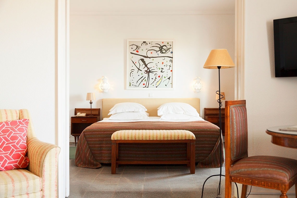 La habitación superior vista al mar está compuesta por dos camas individuales, una tercera cama individual a la entrada de la habitación y un balcón con vistas al mar ya la playa de Monte Gordo. Todas las habitaciones cuentan con aire acondicionado, baño privado, televisión, minibar y acceso Wi-Fi gratuito.